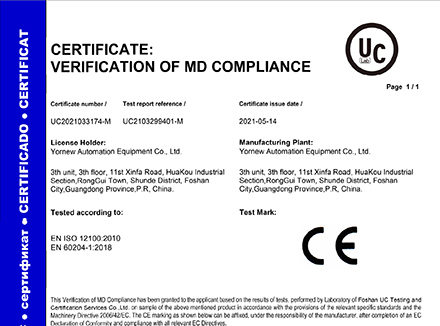 熱烈慶祝佛山市順德區育能裝備有限公司通過2021年歐盟CE認證。CE認證,即只限于產品不危及人類、動物和貨品的安全方面的基本安全要......